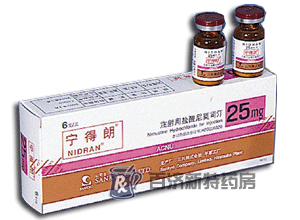 【性狀】白色或微黃色粉未。寧得朗25mg1支加注射用蒸餾水5ml溶解時的pH值為3.0-4.5。