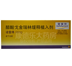 【用法用量】成人 3.6 mg的注射埋植劑,每28日1次,作腹前壁皮下注射,如果必要可使用局部麻醉。肝、腎功能不全者或老年病人不必調整劑量。子宮內膜異位癥病人的療程為6個月。