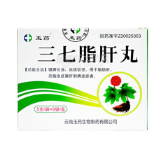 請仔細閱讀說明書并在醫師指導下使用 【藥品名稱】 通用名稱:三七脂肝丸 漢語拼音:Sanqi Zhigan Wan 【成 份】 三七、莪術、菟絲子、菊花、白術、澤瀉、白芍、荷葉、青皮、赤芍、云山楂、蜂蜜(煉)。 【性 狀】 本品為棕褐色至黑褐色的濃縮水蜜丸;氣微香,味苦而微酸、甜。 【功能主治】 健脾化濁,祛痰軟堅。用于脂肪肝、高脂血癥屬肝郁脾虛癥者。 【規 格】 每10丸重0.65克 【用法用量】 口服。一次5克(1袋),一日3次;或遵醫囑。 【不良反應】 尚不明確。 【禁忌】 孕婦禁服。 【注意事項】 尚不明確。 【貯 藏】 密封。 【包 裝】 復合膜袋包裝;5克/袋*9袋/盒。 【有效期】 36個月 【批準文號】 國藥準字Z20025353 【生產企業】 企業名稱:云南玉藥生物制藥有限公司