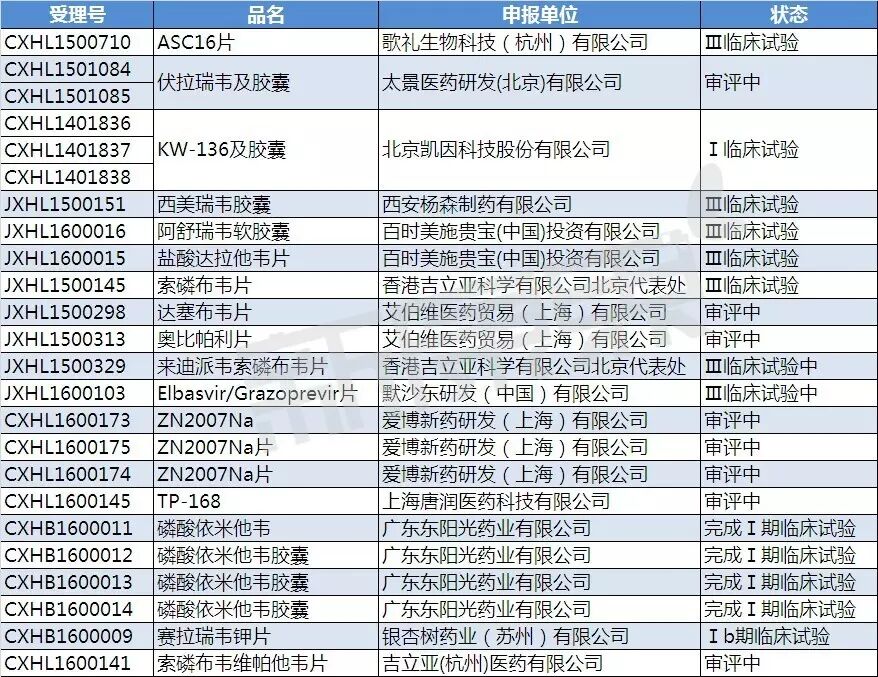 表2. 擬納入優先審評程序藥品注冊申請的HCV藥物