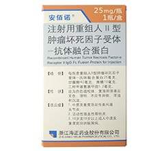113754 | 安佰諾 | 注射用重組人Ⅱ型腫瘤壞死因子受體-抗體融合蛋白 | 杭州博之銳生物制藥有限公司(原:海正生物制藥有限公司) | 25mg/瓶生物學活性為2.50×10^6AU/瓶 | 盒 | 283.02 |