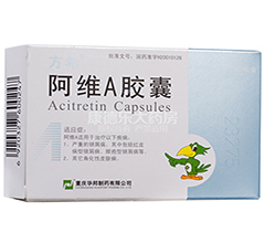 【用法用量】本品個體差異較大,劑量需要個體化,才能取得最大的臨床治療效果,同時不良反應最小。開始治療:開始阿維A治療應為每天25或30mg,作為一個單獨劑量與主餐一起服用。如果經過4周治療效果不滿意,又沒有毒性反應,每天最大劑量可以逐漸增加至每天75mg,如果需要把副作用減至最小,此劑量還可減少。維持治療:治療開始有效后,可給予每天25mg至50mg的維持劑量。維持劑量應以臨床效果和耐受性作為根據。一些病例,增加劑量至最大每天75mg,可能是必要的。一般來說,當皮損已充分消退,治療應該停止。復發可按開始治療的方法再治療。其它角化性疾病:角化性疾病的維持劑量為每天10mg,最大為每天50mg。