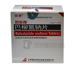 導讀:貝樂司巴柳氮鈉是一種前體藥物,口服后以原藥到達結腸,在結腸細菌的作用下釋放出5-氨基水楊酸(有效成分)和4-氨基苯甲酰-β-丙氨酸。5-氨基水楊酸可發揮其減輕炎癥的作用。貝樂司是治療炎癥性腸炎的一線藥物。